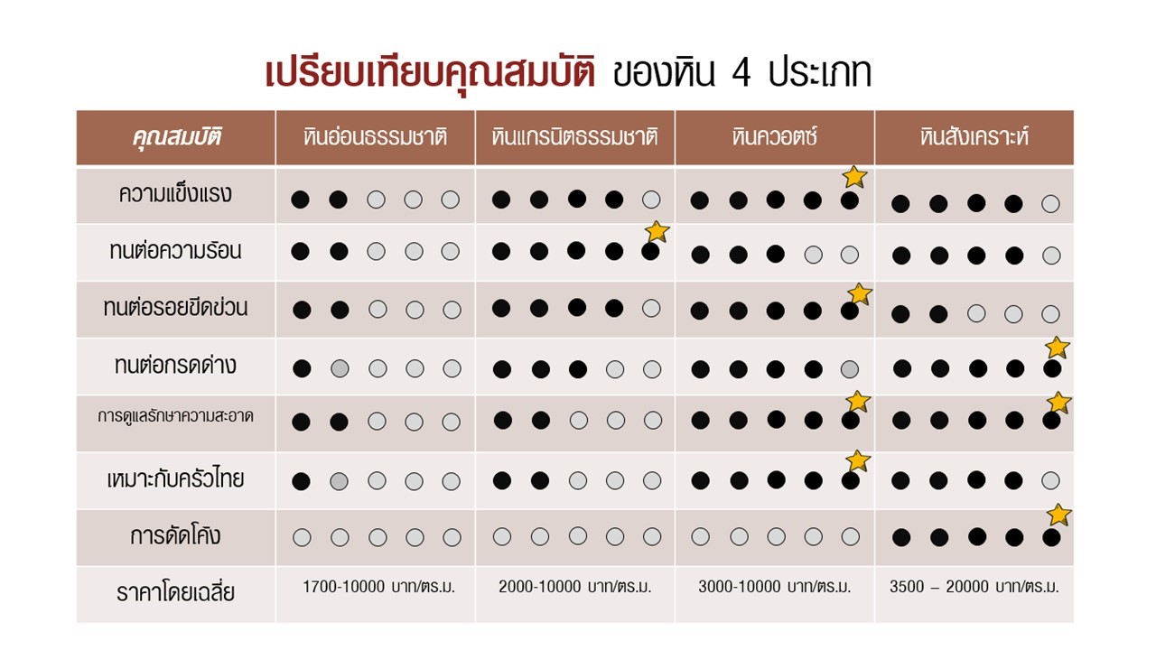 หินสังเคราะห์และหินแกรนิต สามารถใช้งานบริเวณท็อปเคาน์เตอร์ได้เหมือนกัน เพียงแต่ว่ามีคุณสมบัติบางอย่างที่อาจจะทำให้การใช้งานยาก และดูแลรักษายาก วันนี้ SW จะมาแนะนำเกร็ดความรู้ในการเลือกใช้งานมาฝาก